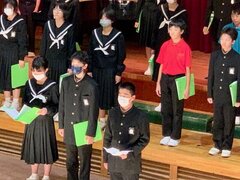 昨年度から「愛ある合唱」を褒めてきた3年生は言うまでもなく、力を高めてきた2年生の「スマイル合唱」(指揮者の笑顔が、伴奏者含めみんなに拡がる姿)、チャレンジャー1年生の「真剣合唱」(「これまでで一番真剣にできた」と誇る姿)など、全体がレベルアップしてきた成果を、全校合唱曲♪『手紙』で披露することができました。