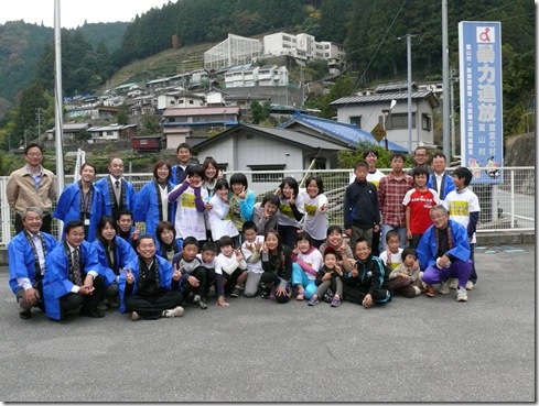 富山地区を練り歩いた後に、多くの方に子ども村祭りに来て下さるよう呼びかけました。