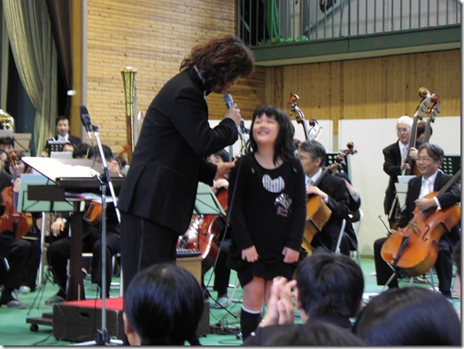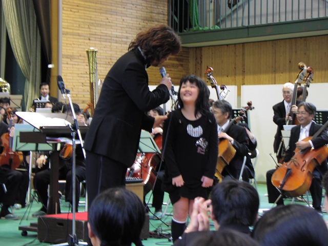 演奏を聴いたあとは、オーケストラの演奏にのせて「大切なもの」と「校歌」を富山小中学校