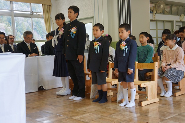 今年度の富山小中学校の新入生は4人(小学校2人、中学校2人)、転入生は7人です。小中学校の児童・生徒は総勢で16名で新しい一年をスタートしました。