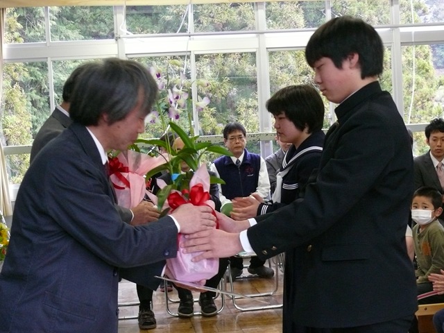昨年度までお世話になった先生方に感謝の気持ちを込めて、色紙と花を贈り、別れの歌「あなたに会えて」を全員で歌いました。最後に花道を作り、先生方を送り出しました。
