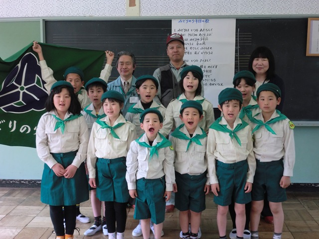 みんなで誓いの宣誓を行い、みどりの少年団のうたを歌いました。