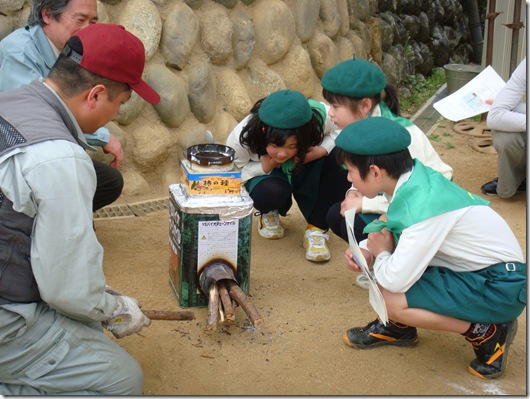 ロケットストーブを使って、薪が燃えている音や火の色を見て自然の事、森の事を考えました。