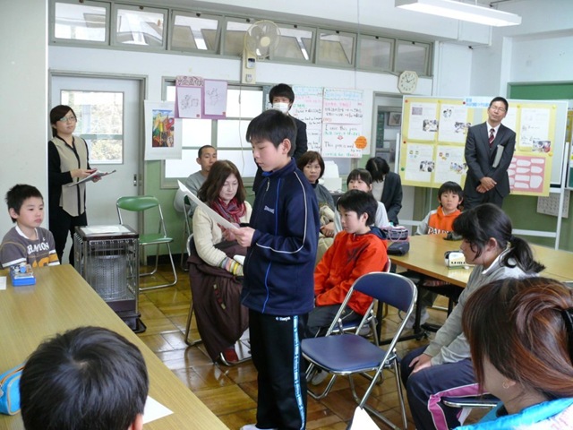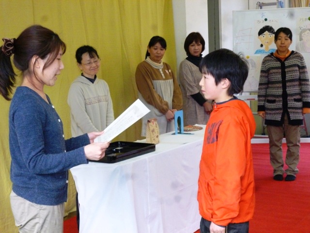 あ小学校では、先日の卒業式での6年生のように・・・とまではいきませんでしたが、みんなしっかりと修了証を校長先生から受け取りました。その後、3学期や1年間でできるようになったこと、がんばったことと、来年度がんばりたいことを発表しました。