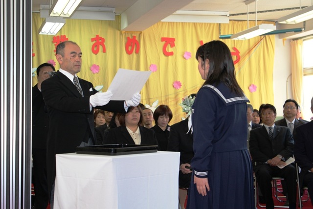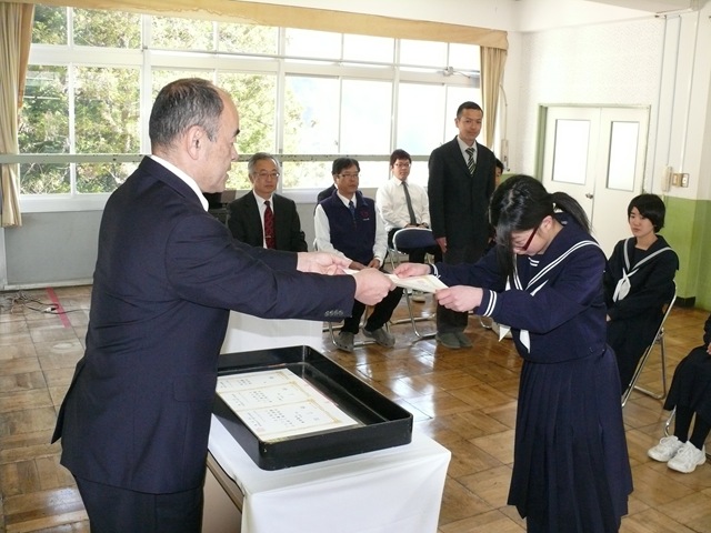 あ中学校では4人とも、校長先生から立派に修了証を受け取り、3学期に頑張ったことや今後の抱負を発表しました。