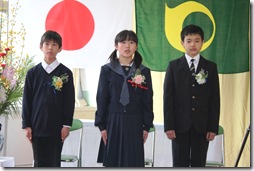 あ校長先生からは、「みんなの顔を見ていると、表情が穏やかになったと思います。心も体も成長しました。みんなががんばったからですが、そこには支えてくれた人たちがいることと、感謝の気持ちを忘れずにいてください。自分のできることを精一杯にがんばることが、その恩返しになります。」との話がありました。