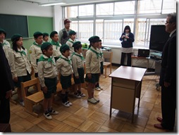 また、村井校長先生からは、5月5日に行われた松尾先生の結婚式について簡単な紹介がありました。「本当にいい結婚式でした。式の間、松尾先生はずっとうれしそうな顔をされていたし、奥さんはきれいで笑顔の素敵な方でした。みなさん(子どもたち)の気持ちも伝えることができました。」とのことでした。