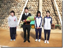 そして、代表で子ども村の村長、副村長が花束とプレゼントを贈呈しました。