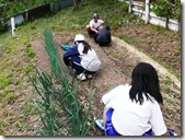 朝から雨がぱらついていて心配しましたが、予定通り全校での農園活動を行うことができました。