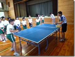6月14日(木)に行われる郡小学校体育指導会に向け、5月23日(水)に富山小学校 の5・6年生と一緒に卓球の練習を行いました。指導者として豊根中学校の大久保日出世先生をお招きし、スマッシュやバックハンドの練習方法、カットサーブに対応できるレシーブの練習方法等を中心に教えていただきました。一人一人が技術の上達をめざし、真剣な眼差しで練習に取り組むことができました。