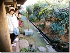 宇治橋のそばの紫式部の前で記念写真