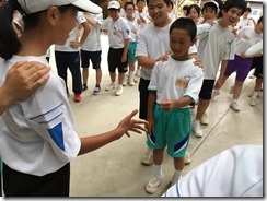 ・始めて出会う子たちで,英語もあまりよくわからないこともあったけれど,みんなで協力してできたのでよかった。4人ペアで自己紹介するときも,好きなものを言い合って,お互いのことを知ることができた。豊明の子は,話しやすい子だった。(1年生女子)