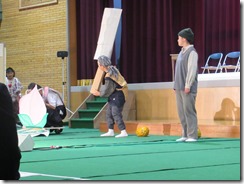 1年生劇は,桃太郎の話をおもしろくアレンジした内容でした。『おばちゃんダンス』が登場し,劇を盛り上げました。