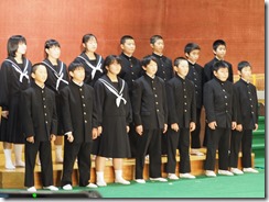 合唱コンクールでは、1年生『Forever』,2年生『Story』,3年生『ヒカリ』,全校合唱『美女と野獣メドレー』を歌いました。どの学年もすばらしかったとの声を審査された方からいただくことができました。