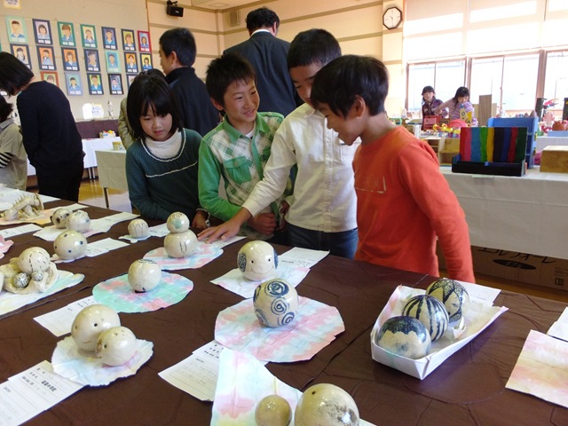 造形展では、設楽町内の他の小学校や中学校の生徒の作品を見学しました。自分たちとは作品作り方が違ってとても参考になりました。また、中学生の素晴らしい作品も参考になりました。自分たちの学校だけでは見ることができない、さまざまな工夫をした作品を見ることができるよい機会となりました。