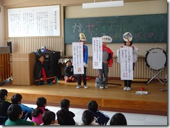本年度の活動には、保護者・スクールガード・駐在職員・語りの会・指導会コーチの皆様方が参加してくださいました。子どもの司会で会が進行し、小学校1年生から6年生までの思い出をプレゼンテーションで紹介し、それに関する問題を出してお客さんに答えていただく企画はとても楽しかったです。また、手作りのお菓子やプレゼント、手紙なども用意され、一人一人に感謝の言葉を述べて気持ちを伝えるなど、すばらしい会となりました。