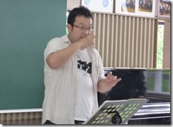基本の息の使い方、リズムや音色、そして、伝統の1曲「アメリカ」を指導していただきました。3年生も、まだ十分音は出ませんが、隣の上級生の指使いを見ながら、一生懸命頑張っていました。先生達も、次回の講習会までに更によいものにしようと熱心にメモをとっていました。