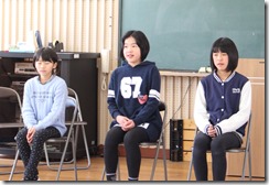 各クラスの代表が、3学期頑張ったことと、来年度頑張りたいことを発表しました。