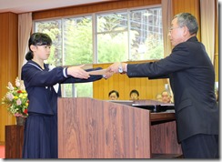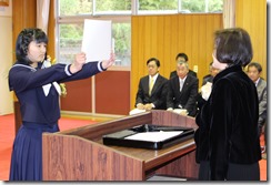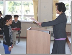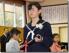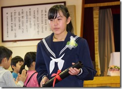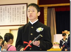 1~5年生の代表児童が、修了証書を受けとりました。よい返事、よい姿勢、真っ直ぐに前を見つめる瞳。卒業生にも負けない堂々とした姿に、この1年間頑張った達成感と自信を感じました。