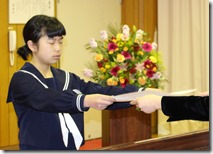 校長からは、「物を大切に、時を大切に、人を大切にできましたか?一番難しいのは、自分を大切にすることです。1年間よく頑張りました。今日はたくさん自分を誉めてあげましょう。」というお話がありました。