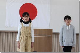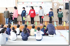 6年生が卒業し、20人での修了式でした。担任の先生から名前を呼ばれると、とてもいい返事ができました。修了証を受けとった代表児童も、卒業生に負けないくらい堂々と立派にできました。1年の終わりにふさわしい姿でした。