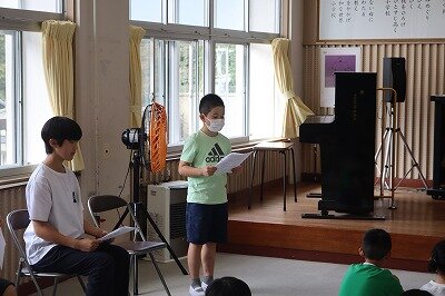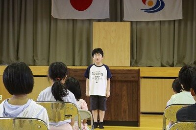 夏休みの思い出と2学期がんばりたいことが、子どもたちから発表されました。