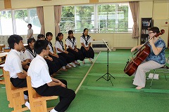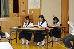 午後はお楽しみ会。全校会食には教育長さんをはじめとした町教委の皆さん、そして訪問のお世話をして下さっている平松さんも参加してくださいました。生徒会役員によるインタビューもあり、楽しい一時でした。その後はフルーツバスケットです。設楽中学校に来ているサウス中学校の「Do you like ...?」のフレーズが多いフルーツバスケットでしたが、生徒も先生も楽しそうでした。そして、最後に、津具中自慢の合唱を聴いていただきました。