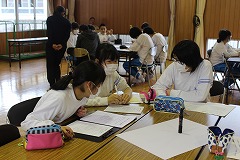 20日の2・3時間目に、したら保健福祉センターの保健士 今泉さんと秦野さんが性感染症について、3年生に授業をしてくださいました。この津具地区では、「命の学習」を保育園から中学生まで実施しています。現在中学3年生の生徒が小学生の頃の「命の学習」で赤ちゃんについて学習したときの写真なども提示され、盛り上がりました。その後、性感染症について、実験や話し合いもおりまぜながら、教えていただきました。最後に、代表の生徒が「今日学んだ知識を忘れずに、自分を大切にして、豊かに生きていきたい」と、保健師さんに感謝の言葉を述べました。(C)