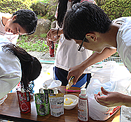 朝食作り(アルファ米・みそ汁)。交流体験活動「鴨山の自然講習会(講師:加藤博俊さん)」。昼食作り(カレーライス)。ふれあいタイム「レクリエーション」。閉校式。