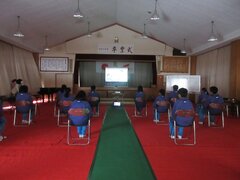 続いて、職員からは、3年間の思い出の行事をスライドにまとめて上映しました。